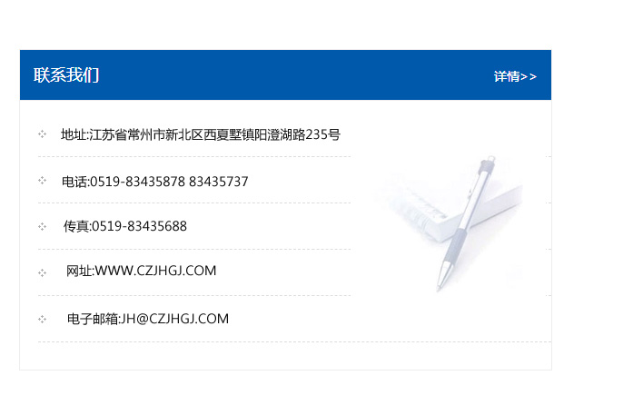 傳真:0519-83435688    郵編:213135    網址:WWW.czjhgj_com.gz-pm.com    電子郵箱:JH@czjhgj_com.gz-pm.com